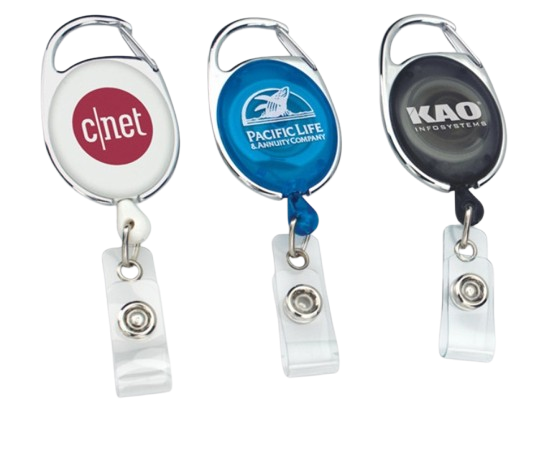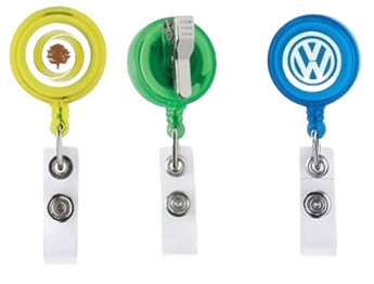 Retractable ID Badge Reels (yoyo) with print. Please contact us for more information.